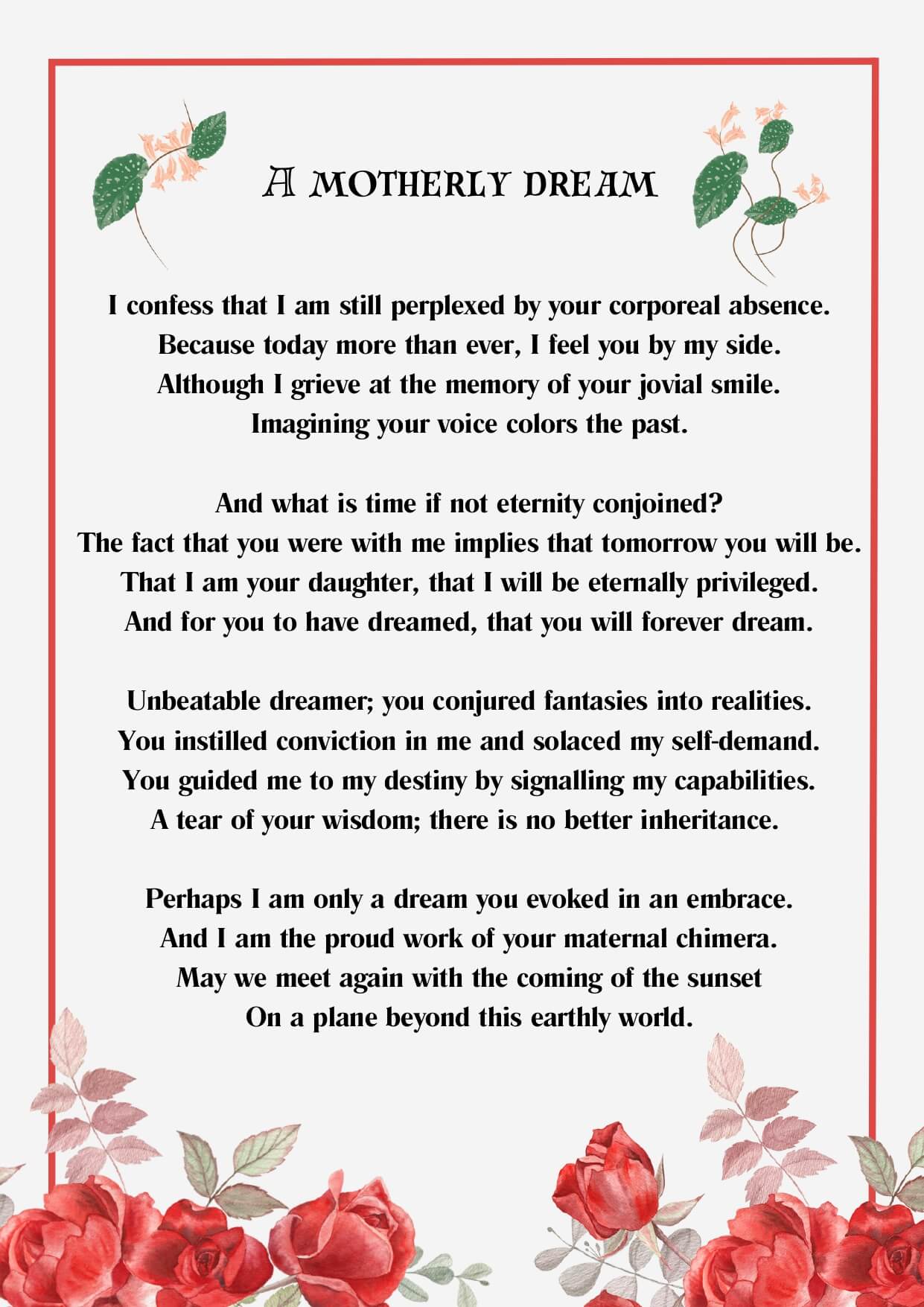 The person I hold dearest in my heart! I want to express my heartfelt gratitude for your care and guidance, which have played an instrumental role in shaping me into the person I am today. Mom, your inspiration has driven my growth as a writer, and I am truly grateful for it.